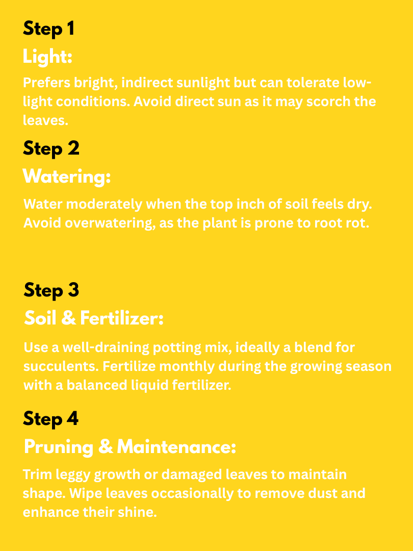 Special Feature Thick, glossy green leaves with a clean, minimal look