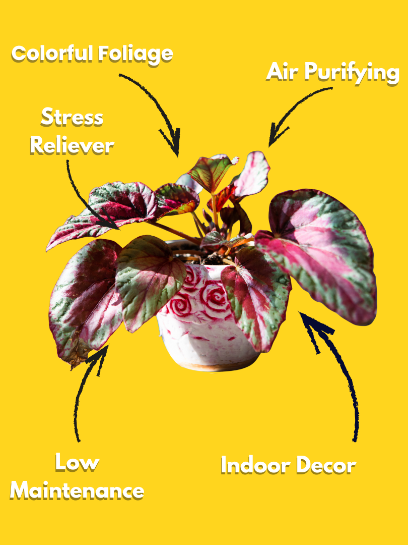 | Common Name | Painted Leaf Begonia, Rex Begonia |