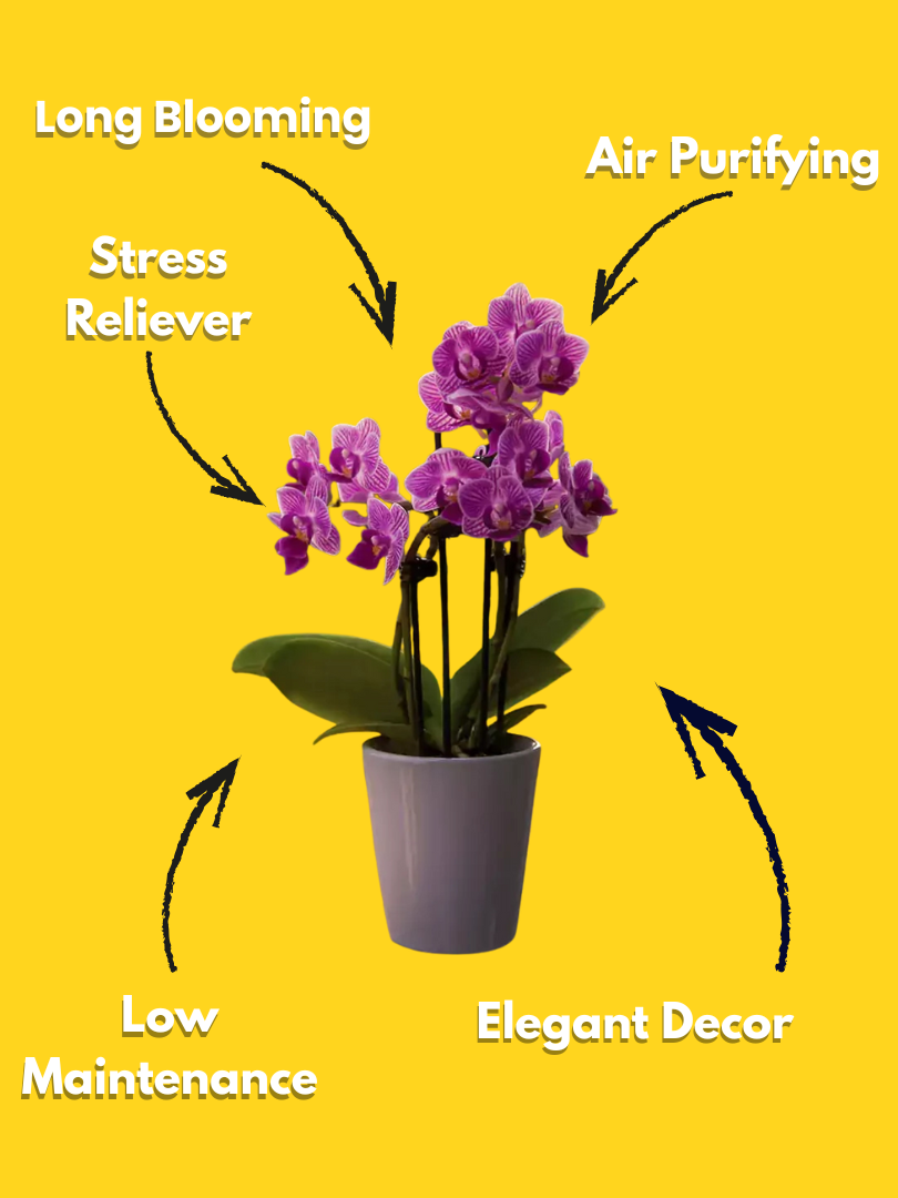 The Moth Orchid is a timeless classic, adored for its long-lasting blooms and graceful arching stems. Available in many colors, it thrives in filtered light and moderate humidity. Elegant and easy to maintain, it’s ideal for gifting and luxury interiors.