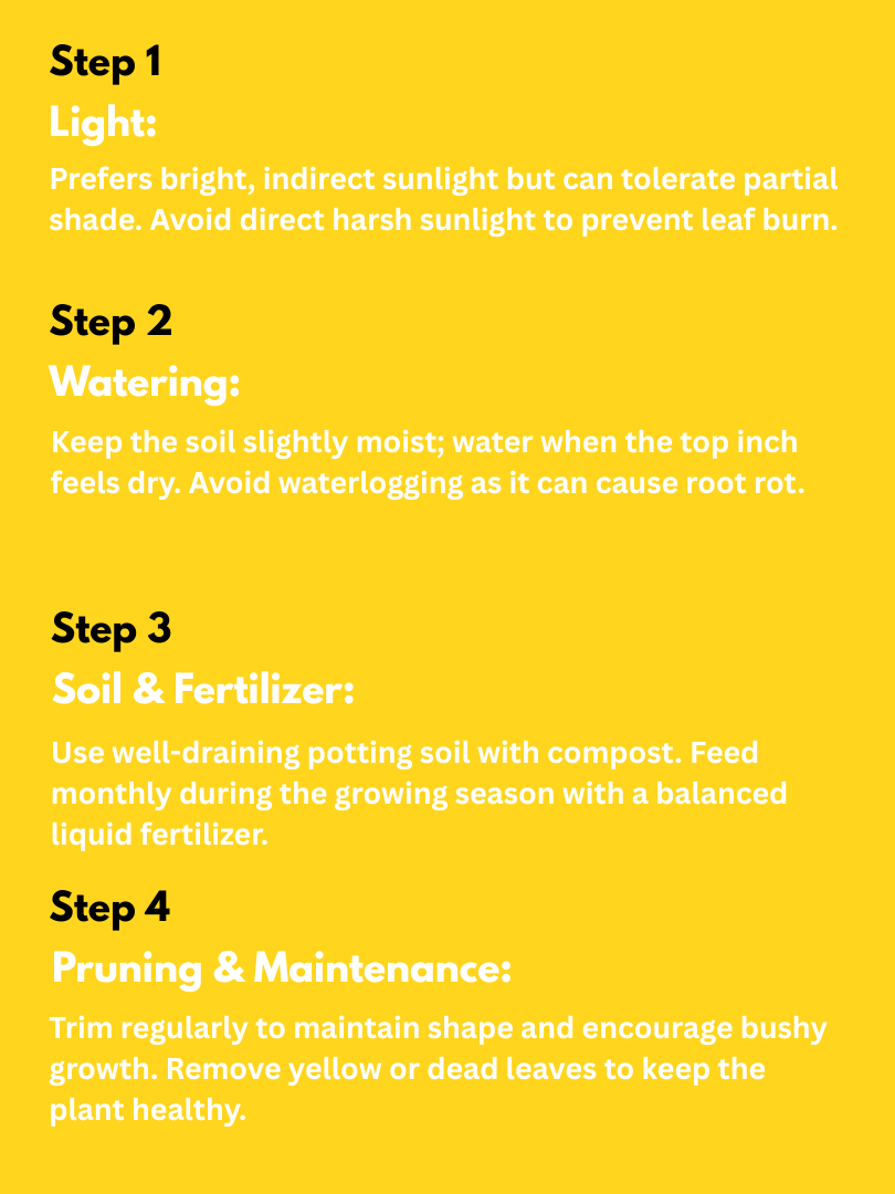 | Light Requirement | Bright, indirect sunlight (tolerates medium light) |