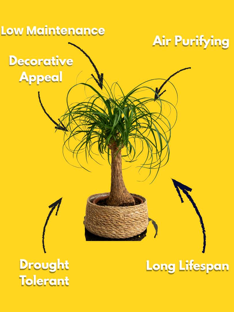 | Special Feature | Swollen base that stores water and dramatic ponytail foliage |