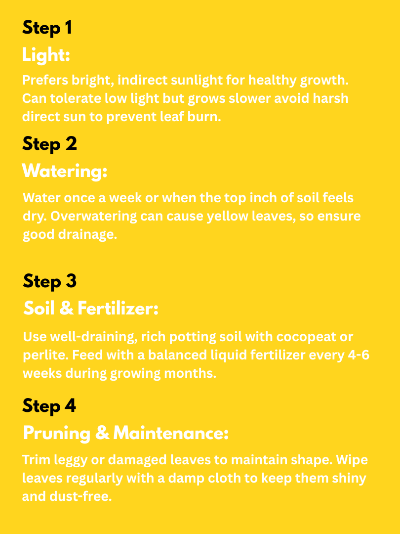 | Light Requirement | Bright, indirect sunlight (tolerates medium light) |
