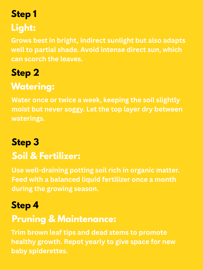| Propagation | Plantlets (spider babies) or root division |